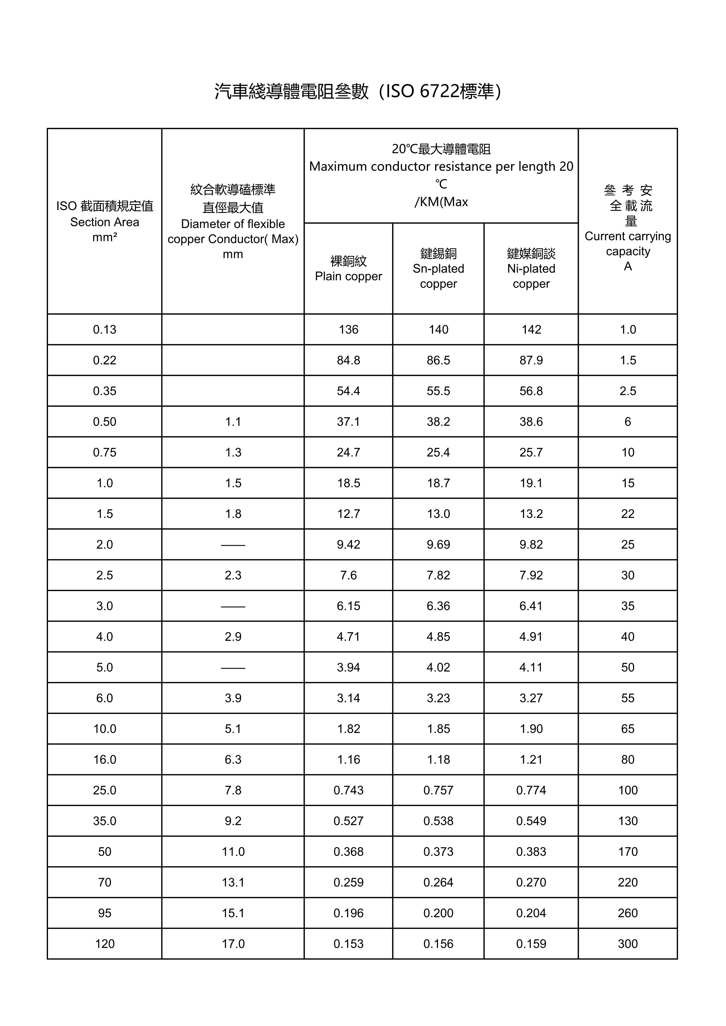• 汽車線導(dǎo)體電阻參數(shù)數(shù)據(jù)介紹